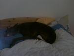 Wenn wir wieder zuhause sind, gibt es Frühstück. Während Frauchen duschen und anziehen geht, schlafe ich erstmal. Der Tag war ja schon anstrengend genug.