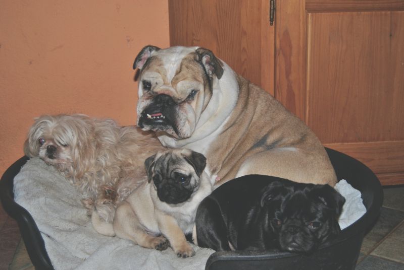 "Am Sonntag, 5. Juni 2011, hat uns unsere über alles und von allen geliebte Püppi ganz plötzlich verlassen. Püppi hatte ein großes Herz voller Liebe und einen goldenen Charakter. Sie liebte alle unsere Katzen, die anderen Hunde und am meisten unsere beiden Möpse, deren Babys sie in den letzten Wochen noch liebevoll umsorgte und erzog. Dankbar, dass das liebe Mädchen noch einige schöne Jahre bei uns haben durfte, sind wir doch sehr traurig und vermissen sie sehr!"