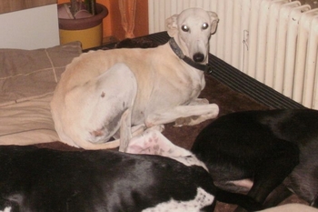 Für Kido sind auch alle Weichen gestellt, er darf natürlich bei Madeleine, Lars und den beiden Whippetmädchen, Kiki und Evita...