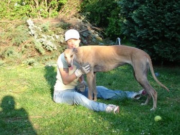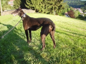 Lilly Rose ist vermittelt! Lilly Rose hatte Glück. Susanne und Peter und natürlich Maddox waren sehr schnell überzeugt, daß man auf einem Bein, sprich Greyhound, nicht stehen kann......oder war es...
