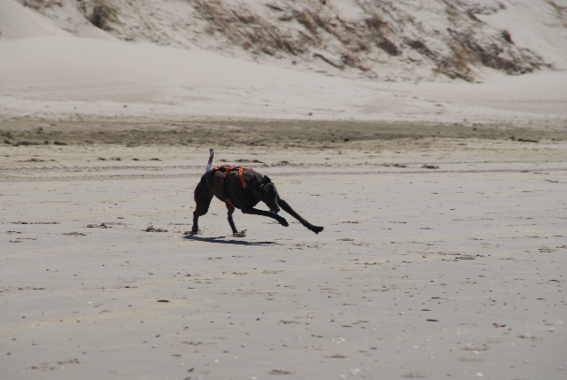 vor fast 6 Monaten haben wir unsere Amy (Baby/Walk the mile) von der tollen Pflegemama Martina übernommen und möchten ihren 4. Geburtstag zum Anlass nehmen ein paar Bilder zu schicken. Amy hat sich super bei uns eingelebt und wir und Findus der Dackel möchten sie nicht mehr missen. Sie geht tagsüber fleissig mit ins Büro arbeiten und freut sich abends über einen ausgedehnten Waldspaziergang. Und wer so fleissig arbeiten geht hat natürlich auch Urlaub verdient, mittlerweile war sie schon zweimal mit uns in Holland und hatte sichtlich ihren Spaß sich am Strand so richtig auszutoben und ein paar Sprints hinzulegen wie man auf den Bildern sieht. Aber auch ausgedehntes kuscheln auf dem Sofa ist eine ihrer Lieblingsbeschäftigungen und ihre Paradedisziplin ist "im Weg stehn" wo immer es geht, vorzugsweise in der Küche. Sie hat sich zu so einer tollen, hübschen, klugen, freundlichen Maus entwickelt und es macht uns jeden Tag Freude unser Leben mit ihr zu verbringen. Eine der besten Entscheidungen, die wir treffen konnten, war sie bei uns aufzunehmen. Wir möchten uns noch bei Martina bedanken, die uns bei jeglichen Fragen bezüglich unserer ersten Greydame mit ihrer lieben Art immer zur Seite gestanden hat.