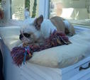 Armand hat sich so hervorragend eingelebt, als ob er schon immer hier zu Hause war. Sein neu eingerichtetes Plätzchen hat er gleich als Seins erkannt.