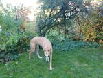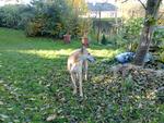 Robin ist 7 Jahre alt, ein großer Kerl und ein Bild von einem Greyhound. Er ist freundlich zu allen Menschen und allen anderen Hunden, sogar mit kleinen "haarigen" Hündchen hat er Geduld. Wenn er andere Tiere wie Katzen, Hühner usw. sieht, dann ist er zwar sehr interessiert, bewahrt aber Ruhe und lässt sich an der lockeren Leine ablenken.