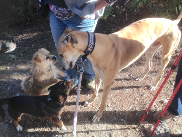 Im Rudel bleibt er sogar gelassen, wenn die junge Podenca um ihn herumflitzt, die blinde Galga verwarnt er, wenn sie auf ihn tritt - genauso machen das seine Rudelkollegen.