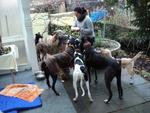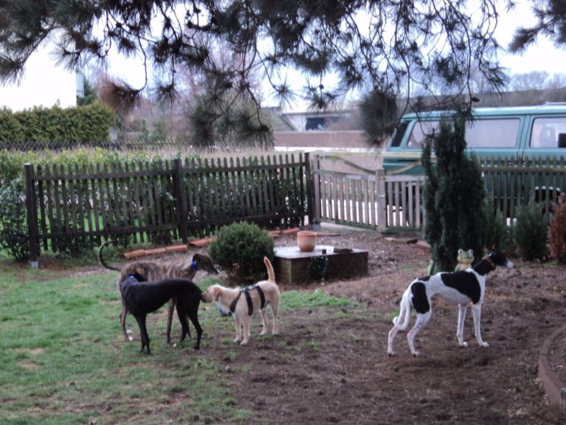 Am 5.3.2016 durften nochmals drei Greyhoundmädchen ihren Start in ein neues Leben einläuten. Britta und Marian hatten bei sich zum Frühstück geladen, wo wir die drei Neuankömmlinge begrüßten. Antje und Christine übernahmen die Drei von Ian wohlbehalten, wie immer.