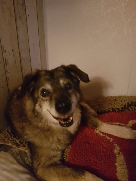 Dieser kleine alte Zausel freut sich über andere Hunde, wedelt diese an, nach ein paar Tagen geniest er alle Streicheleinheiten, die er bekommen kann, fängt sogar an diese einzufordern, hat noch kein einziges Mal ins Haus gepüschert. Natürlich wollte er die ersten Tage sein "eigenes" weiches Bett nicht verlassen. Antje mußte ihn in den Garten tragen, auch Leine laufen geht nicht, das kennt er gar nicht, aber bitte momentan reicht ihm der Garten.