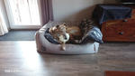 Izzie hat mehr kriminelle Energie als die Jungs. Seit sie da ist, müssen z. Bsp. Schuhe sofort weggeräumt werden (man wird schlagartig ordentlicher!); sie unterzieht ansonsten alles einem Kautest und hortet es danach im Körbchen. Nichts Essbares darf auch nur für wenige Augenblicke unbeaufsichtigt rumstehen, sie kann nicht nur sehr schnell laufen!