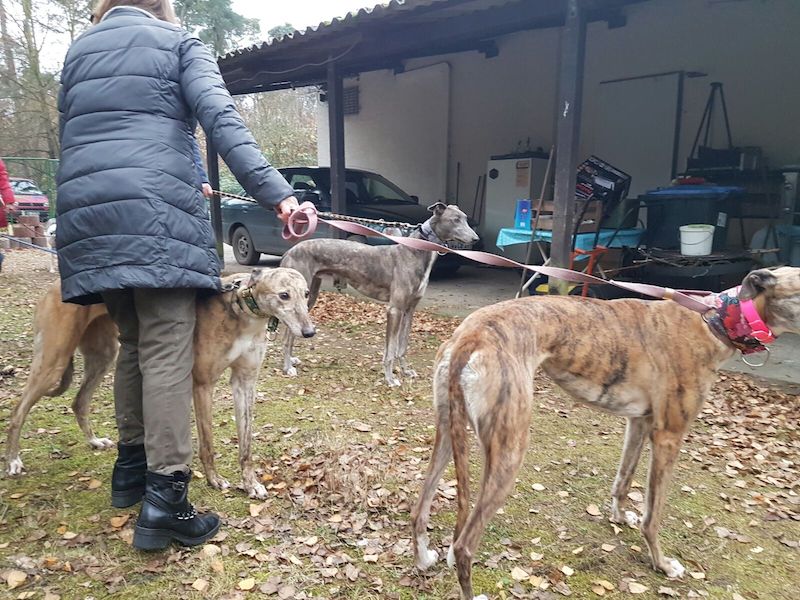 Nachdem auch Antje schier einen Anfall bekam ob zurückgelassener Hunde, entschloss ich mich ganz kurzfristig, alle Greyhounds kommen zu lassen. Was soll´s 12 Hunde, das haben wir schon öfters geschafft.