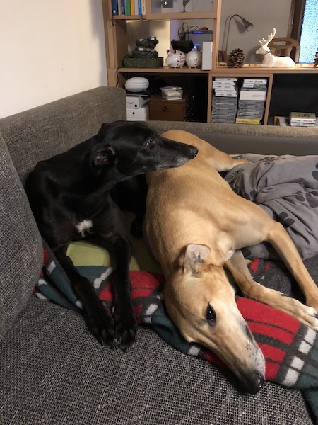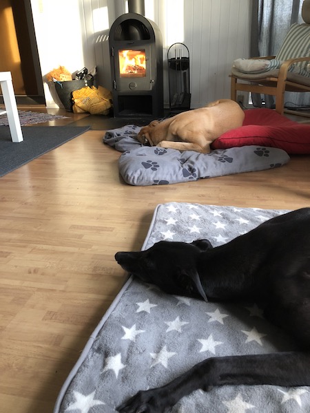 Nach einem tollen Urlaub an der dänischen Nordseeküste hat sich Sheila super eingelebt und versteht sich auch gut mit Brandy, wie man sieht :-) Einzig mit dem Laminat kann sie sich nicht so wirklich anfreunden. Dafür klappt das Treppensteigen inzwischen recht gut. Sheila ist generell eher ängstlich und hat auch einen Dickkopf. Sie orientiert sich aber manchmal an Brandy, daher passt das toll. Sie zeigt fast gar kein Jagdverhalten, ehrlicherweise eine echte Wohltat, Brandy ist ja das genaue Gegenteil :-)