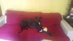 Roxy durfte letzte Woche ihr neues Sofa beziehen. Sie hat eine wunderbare Familie mit einer fast gleichaltrigen Huskyhündin gefunden, mit der sie bereits viel Spaß hat.