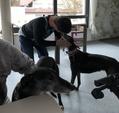 Ich arbeite mit Behinderten und seit fast einem halben Jahr nehm‘ ich die Zwei jeden Freitag mit ins Geschäft. Es hat von Anfang an super geklappt. Die Beiden sind total entspannt und die positive Wirkung auf die behinderten Menschen is’ sensationell. Ich bekomme jedes Mal Gänsehaut beim Zuschauen.