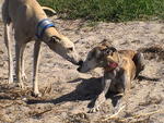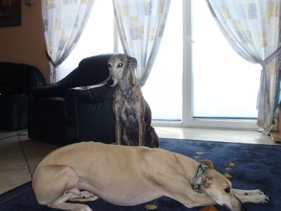 Katzen sind keine Beute mehr, Kinder finde ich klasse, Männer in der Familie sind auch okay, ich fahre gerne Auto und laufe frei ohne Leine, mit meinem Galgokumpel Tommy verstehe ich mich auch super.