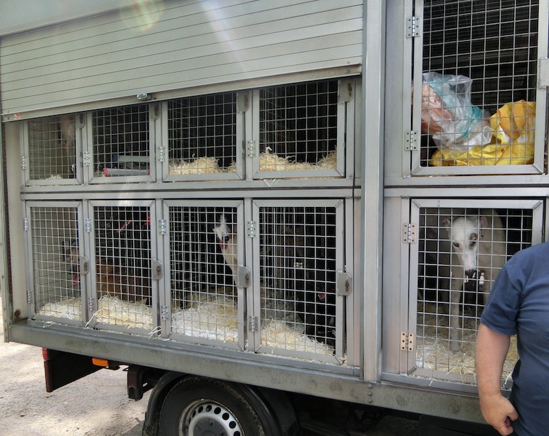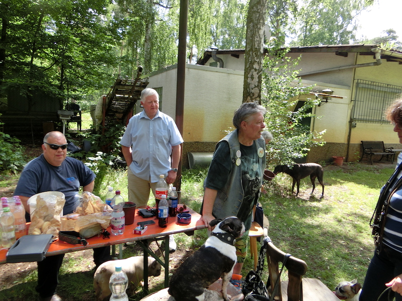 Am 2.6. waren neue irische Greyhounds angekündigt. Zum ersten Mal gestaltete sich die Suche nach Pflegestellen als etwas schwieriger. Vielleicht sind wir nach solch einer langen Zeit der Hilfe auch einfach ein wenig ausgelaugt und einfach ein wenig müde. Doch Dank der selbstlosen Hilfe von Rita und Heinz, Antje, Grit, Lonny, Andrea und Regina gelang es auch dieses mal die 10 wunderbaren Seelchen unterzu= bringen. Britta hatte für belegte Brötchen gesorgt, natürlich selbst gemacht, Getränke und Süßigkeiten standen ebenfalls zur Verfügung. Dana und Thomas waren extra aus Koblenz angereist, um früh genug die Planschbecken und Wassernäpfe zu füllen.