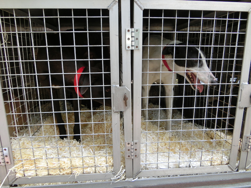 Ian und Paul, wie immer gut gelaunt, hatten unsere Jungs und Mädchen in bestem Zustand abgeliefert. Was für wundervolle Hunde!!!!! 8 Jungs und 2 Mädchen, alle Altersklassen, die Hälfte schwarz, die andere Hälfte bunt. Unsere Franzosen, im Vergleich zu den großen Iren unsere Kurzfüßler, wurden mit "Verachtung gestraft". Danke, liebe Brigid, für diese wundervollen Seelen!!