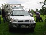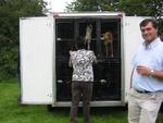 Gegen 13.00 Uhr, nach endlosen "mal schnell schauen, ob er kommt", fahren sie endlich vor. Geländewagen mit großem Hänger, irisches Nummernschild.