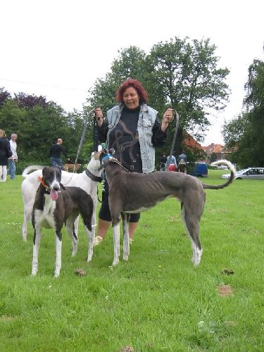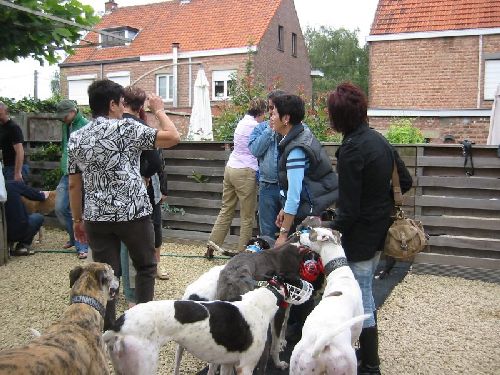 Wir wurden sehr nett von Josephine und ihren Leuten empfangen, natürlich gab es gleich Kaffee. Es warteten bereits viele Familien, die zwar nicht wußten, was genau kommt, die aber alle einen Greyhound adoptieren wollten, einige hatten bereits einen dieser Wahnsinnshunde.