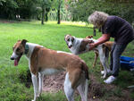 Zwei reizende Mädchen, Dream und Lass, Dream sehr entspannt, Lass, verschmust und lustig, ein Jungspunt eben, Wonder und Molony, die Jungs, gewaltige Buben mit wenig Lebenserfahrung, Babies in einem 40 kg Körper. Es wird spannend, was die Hunde hier noch alles auspacken werden.