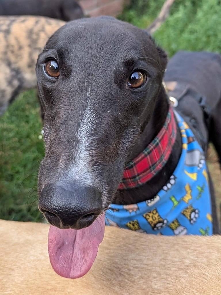 Highview Stage, genannt Gerry, ein etwas anderer Greyhound, er geht nur nachts spazieren, ein Vampir ??, darf natürlich bei Carmen bleiben. ….. als Weihnachtsgeschenk, dem Fest der Liebe. Allein die Farbe stört ein wenig im Rudel.