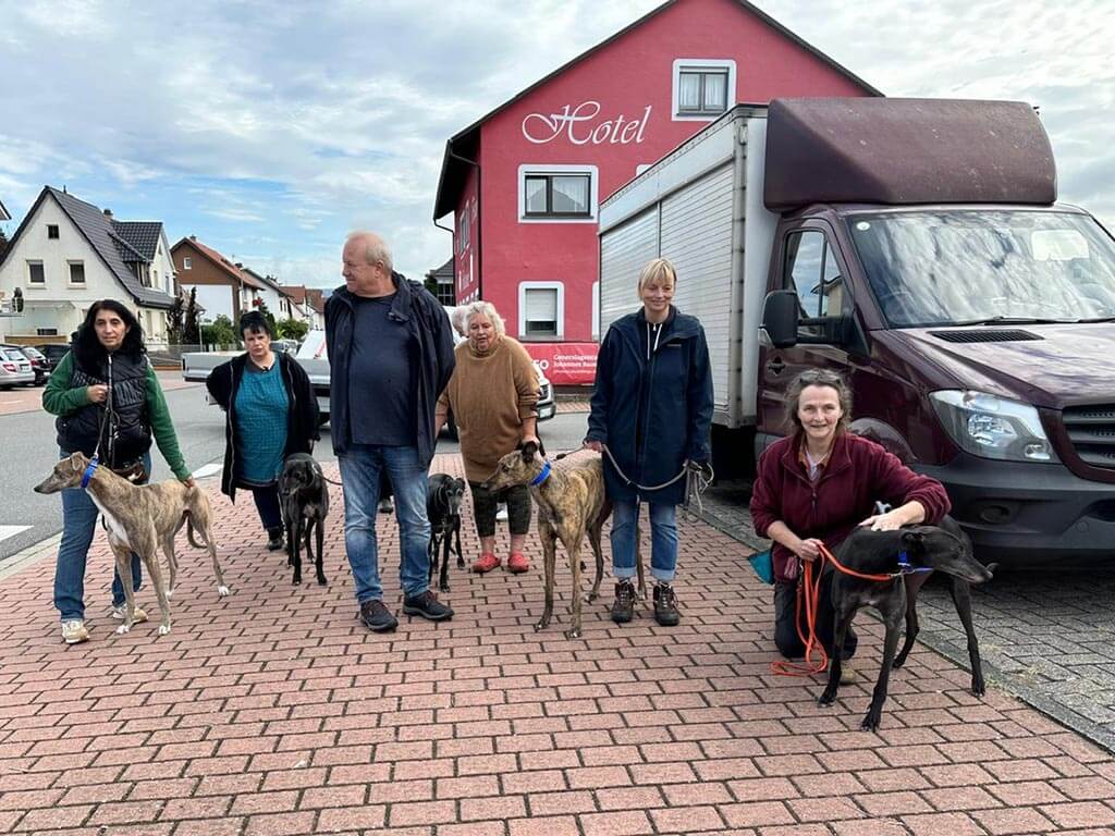 Die 3 noch fehlenden heiss erwarteten Greyhounds kamen am Samstag wohlbehalten hier an. Sicher und liebevoll von Ian und Paul bei uns „abgeliefert“.
