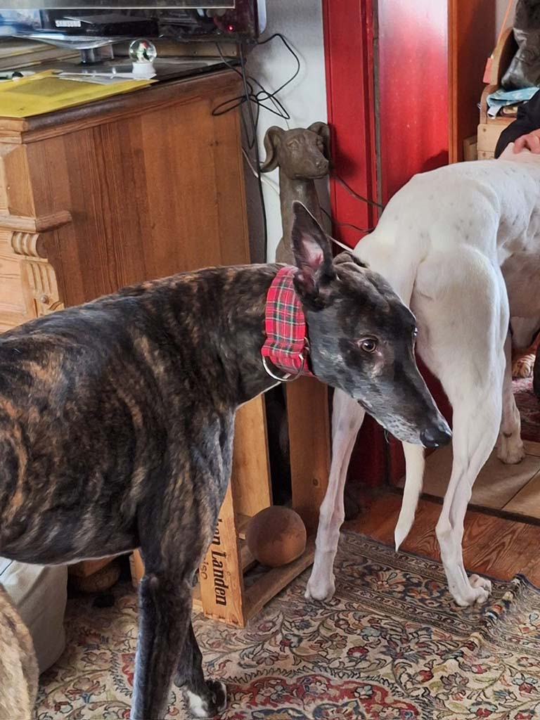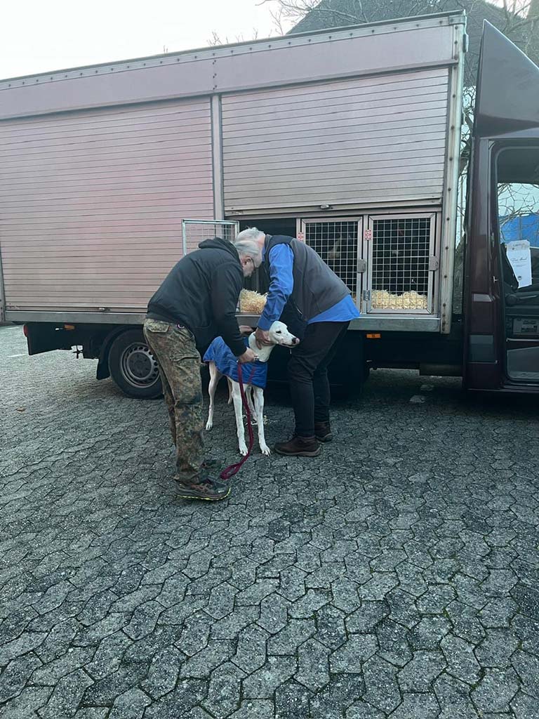Unser letzter 2024 Transport, unsere Weihnachtsgreyhounds sind heute Morgen von Ian gefahren, angekommen. Was für reizende Buben !!