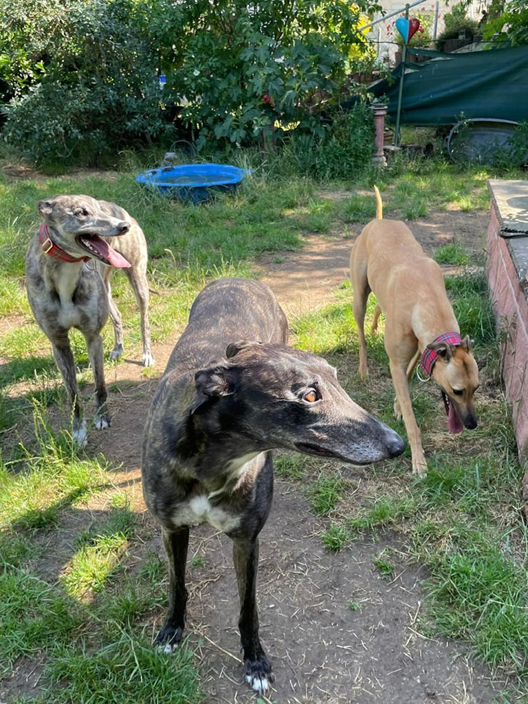 Donaghmore Jack, Connor hatte das grosse Glück bei sehr erfahrenen Greyhoundmenschen einziehen zu dürfen. Dieser wunderschöne Rüde muss noch viel lernen. Da sind Alex und Irmi genau die Richtigen, ihm dies mit viel Geduld und Einfühlungsvermögen bei zu bringen. Da hatte der „Greyhoundengel“ seine Finger im Spiel.