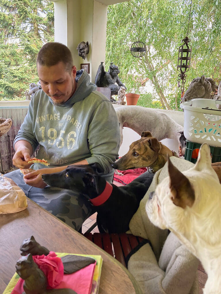 Endlich war es wieder so weit: Ian hatte sich angekündigt mit drei heiß erwarteten Greyhounds.
