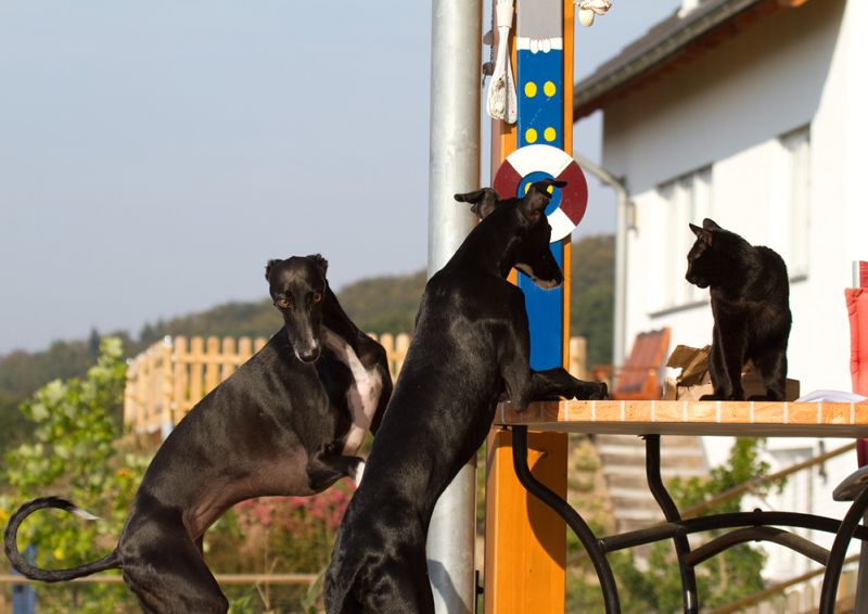 Laila ist zu einer wunderschönen Galga herangewachsen. Sie hatte noch niemals Probleme mit anderen Hunden, andere Hunde noch nie Probleme mit ihr. Laila mag keine Disharmonie, sie schlichtet Streit, wann immer er aufzukommen droht. Sie ist klug und weise, freiheitsliebend und mir dennoch stets treu zugetan, sie ist sanft und stark, hat es faustdick hinter ihren Galgoohren und ist umwerfend charmant…Laila liebt ihr Rudel und geht gerade in einer Art Mutterrolle für Galgo Joshua auf. Laila wird immer souveräner und beschenkt mich jede Minute reich mit ihrer Liebe. Mein Traumhund…