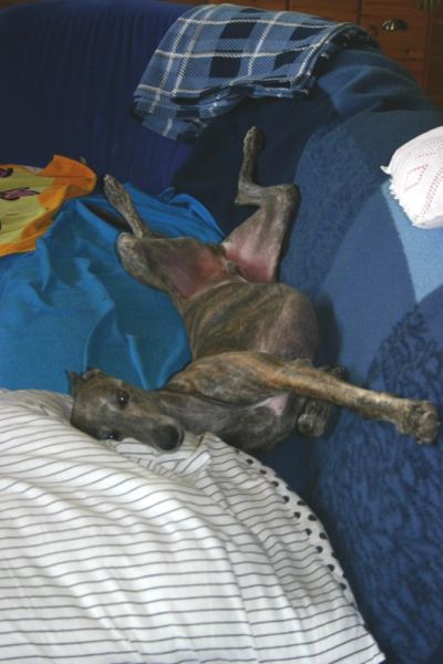 SANDRO hat uns 7 Jahre sehr viel gelehrt: Unaufdringlich, sanft, zurückhaltend, schicksalsergeben und liebevoll zärtlich, das war sein ganzes Wesen. Nie haben wir bisher ein Wesen wie Sandro erlebt. Ja, Windhunde sind besonders und wir kennen einige. SANDRO war aber anders, auf einer ganz anderen Ebene. Er eroberte unsere Seele nicht, er wurde zu einem Teil von ihr, er veränderte und durchdrang sie. Durch ihn lernten wir, dass man auch- und oft besser mit obigen Eigenschaften zum Ziel kommt. Seine Sanftheit weichte unsere Herzen und unser Leben so sehr auf, so dass wir jetzt nicht mehr hart genug sind, den Schmerz zu ertragen, den wir empfinden. Wir stellen keine Frage nach dem „wann ist ein Leben erfüllt“?! Wir gaben ihm weitere schöne 7 Jahre, die er in Spanien nicht gehabt hätte und er erfüllte unser Leben. Leider alles etwas kurz, aber dafür umso intensiver. Wir waren uns gegenseitig ein Segen und wir meinen, das ist Erfüllung auf ganzer Linie.