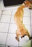 female dog shut into a dirty cattle trailer that had not been cleaned