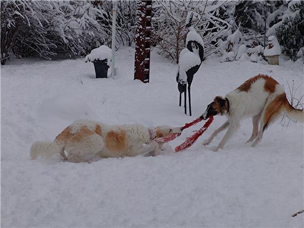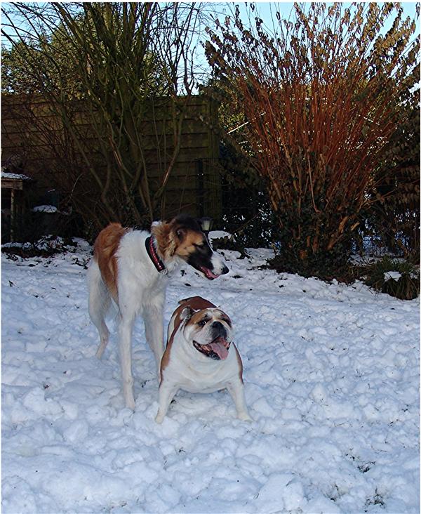 Kolja zog am letzten Sonntag in sein neues Zuhause, das er mit einem reizenden Barsoimädchen sowie einer Englischen Bulldoggendame teilt.