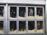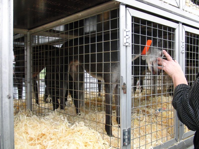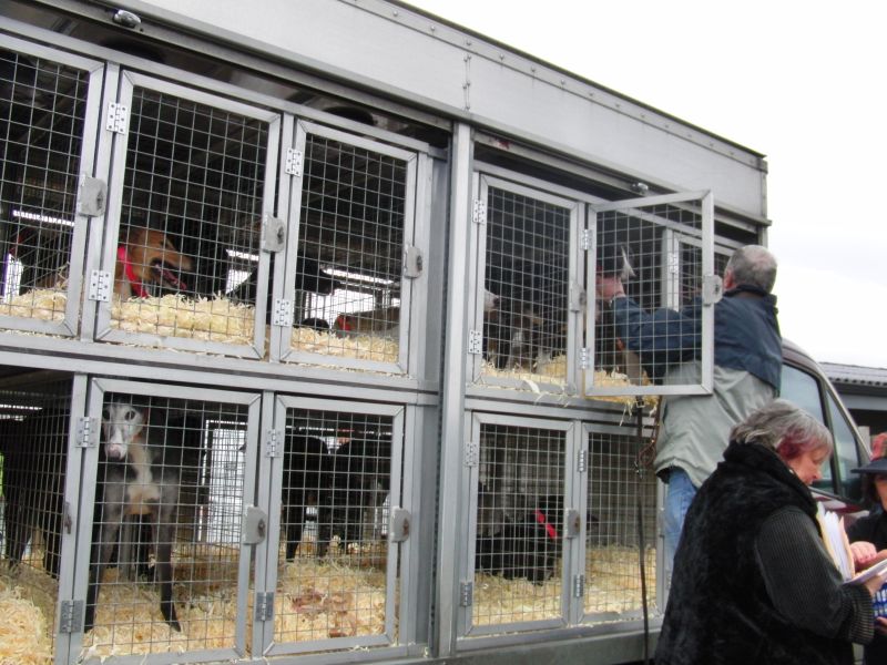 Insgesamt sollten 28 Greyhounds ankommen. Was für ein Augenblick, als der Transporter von Ian Waterworth auf den Hof fuhr und die "Klappen" geöffnet wurden. Immer wieder ein bewegender Moment, da wir wissen, daß nun für die Angekommenen ein neues Leben beginnen wird.