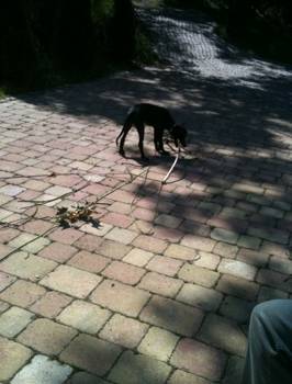 Er hat schon einige Hundekumpels kennengelernt und verträgt sich richtig gut mit ihnen. Heute hatte er seinen ersten Spaziergang mit seinem Freund „Kiko“, dem Galgo unserer Bekannten. Er hat sich schön an ihn gehalten, sehr zu unserer Freude, da Kiko recht gut erzogen ist.
