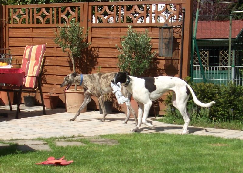 bei uns klappt alles sehr gut mit den Hunden und wir genießen jede Minute mit den beiden Greys. Obwohl sie von ihrem Naturell her sehr unterschiedlich sind, ergänzen sie sich sehr gut und bilden so ein harmonisches Team.