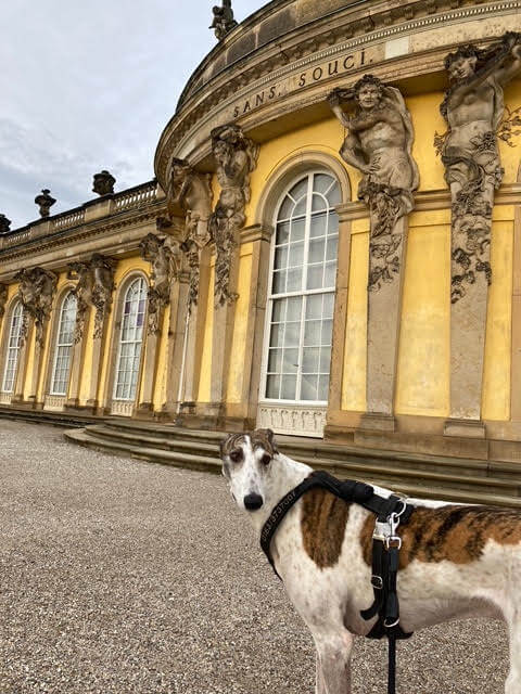 Okis tägliche Gassirunde findet immer in Sans Souci statt. Es hat am Grab der Windhunde auch schon eine Kartoffel mit mir abgelegt - ein kleines Ritual hier.