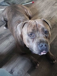 10 Monate alter American Bulldog, super lieb, freundlich, verträglich kommt mit dem Leben im Tierheim so gar nicht zurecht.